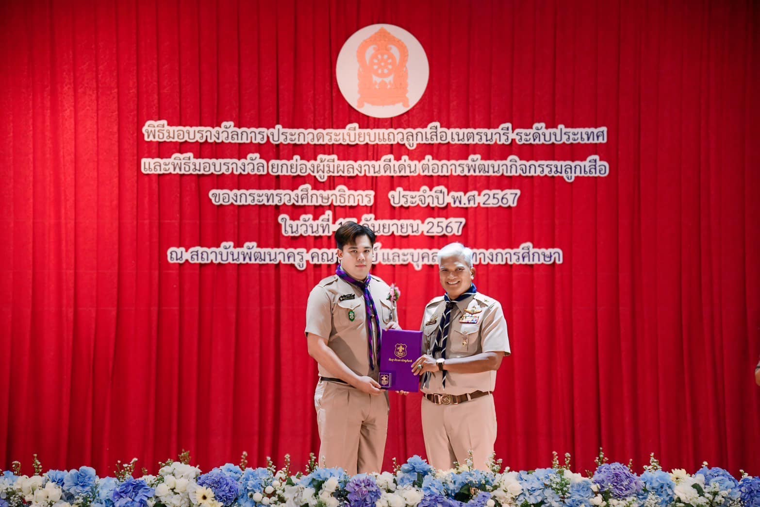 รางวัล เป็นผู้มีผลงานดีเด่นต่อการพัฒนากิจกรรมลูกเสือของกระทรวงศึกษาธิการ “ลูกเสือเสมาเชิดชู่เกียรติ”